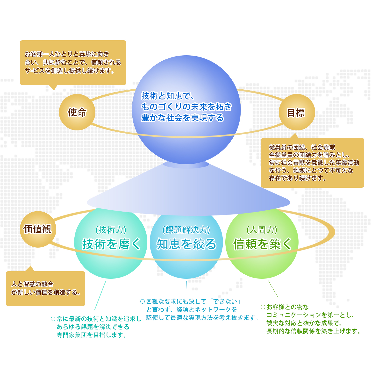 私たちは、お客様の「想い」を起点に、画期的なイノベーションのキーファクターとして、ゼロから価値を共創します。